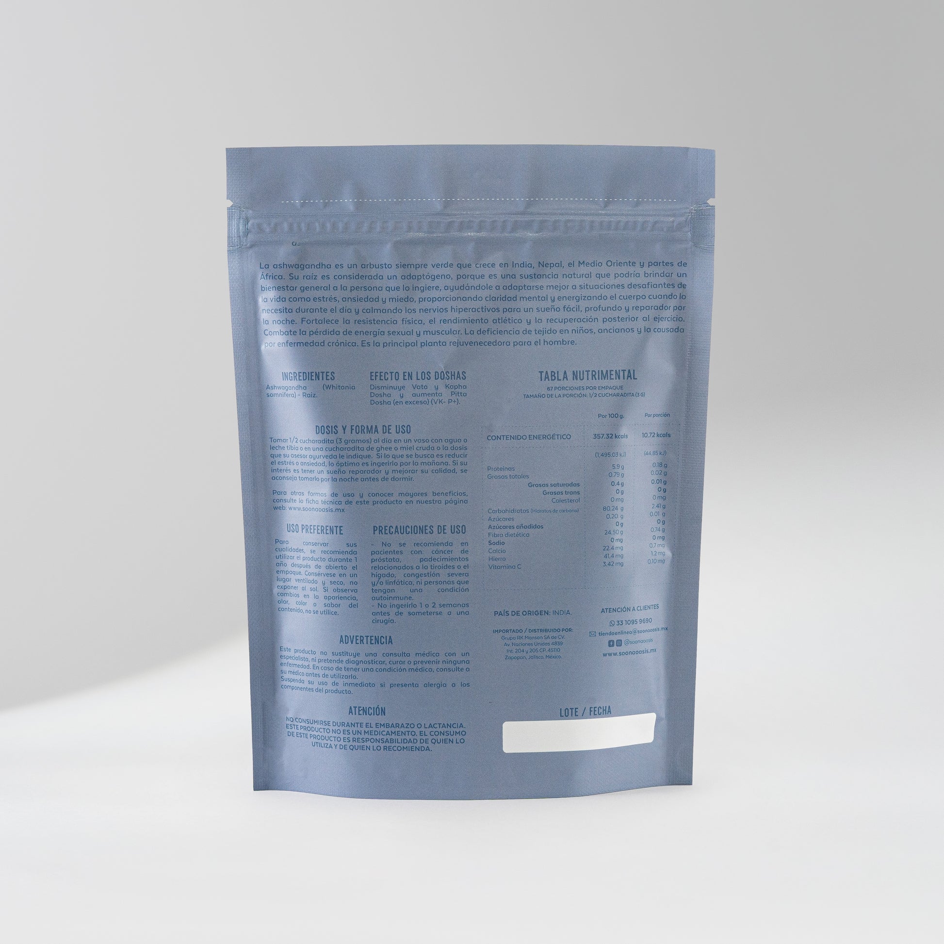 Soona Oasis | Ashwagandha en Polvo | Apoyo al sistema nervioso, energía y equilibrio corporal | Uso alimenticio | Origen India