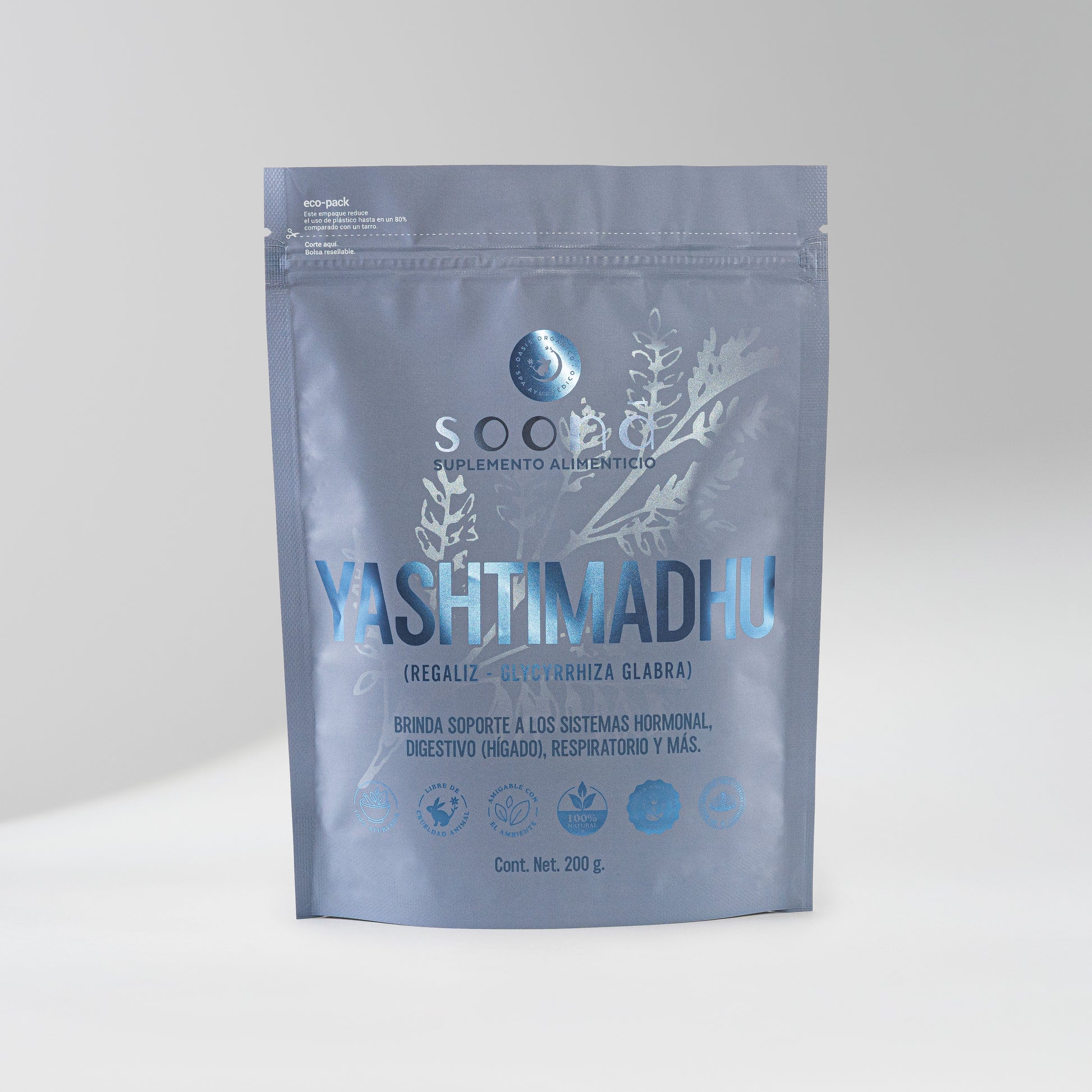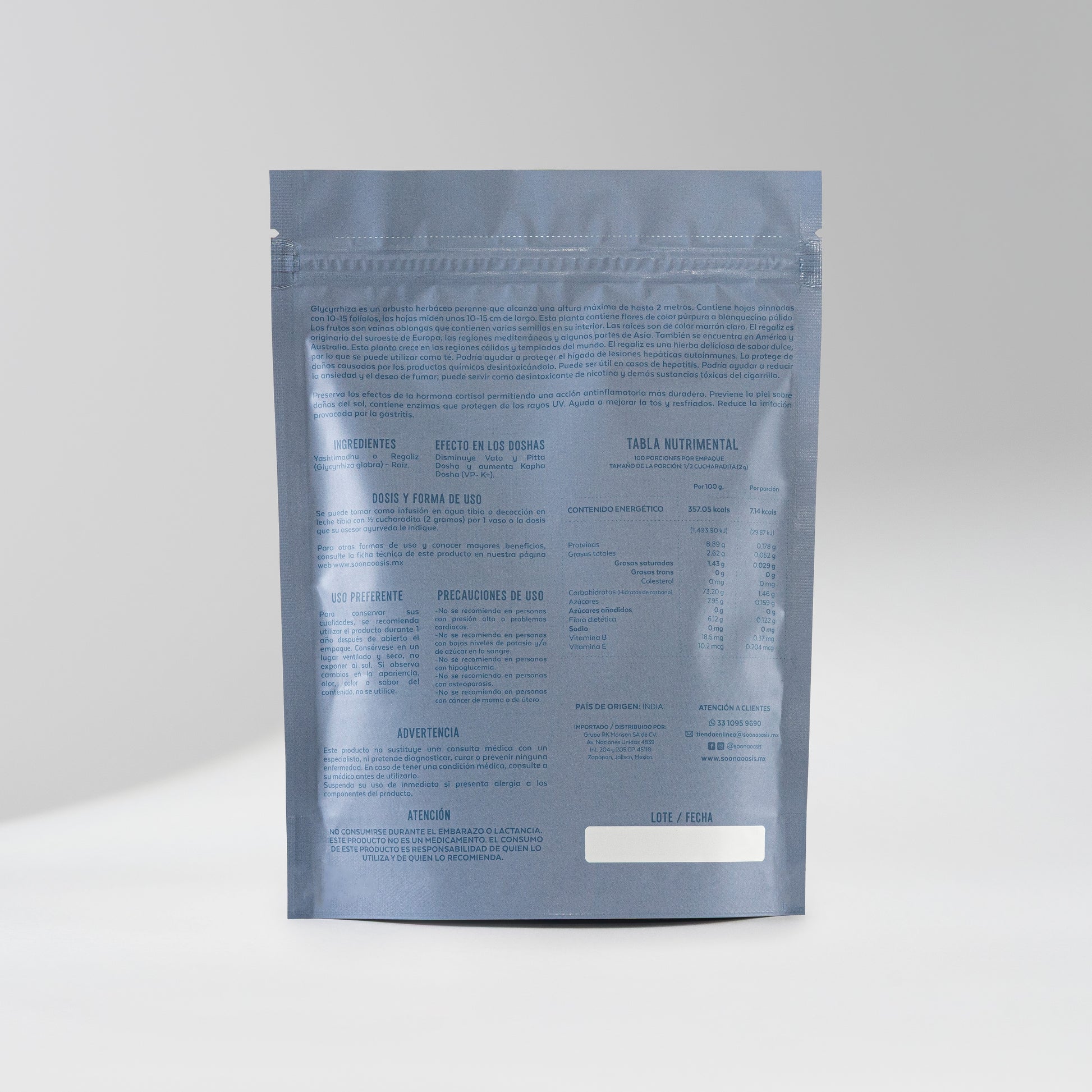 El Yashtimadhu en polvo de Soona Oasis, conocido comúnmente como Regaliz, es una raíz dulce y aromática utilizada tradicionalmente en Ayurveda por su acción protectora sobre el sistema digestivo, respiratorio y hepático. Originaria de Europa, Asia y regiones templadas del mundo, esta planta ha sido valorada durante siglos por su capacidad para acompañar procesos de recuperación interna.